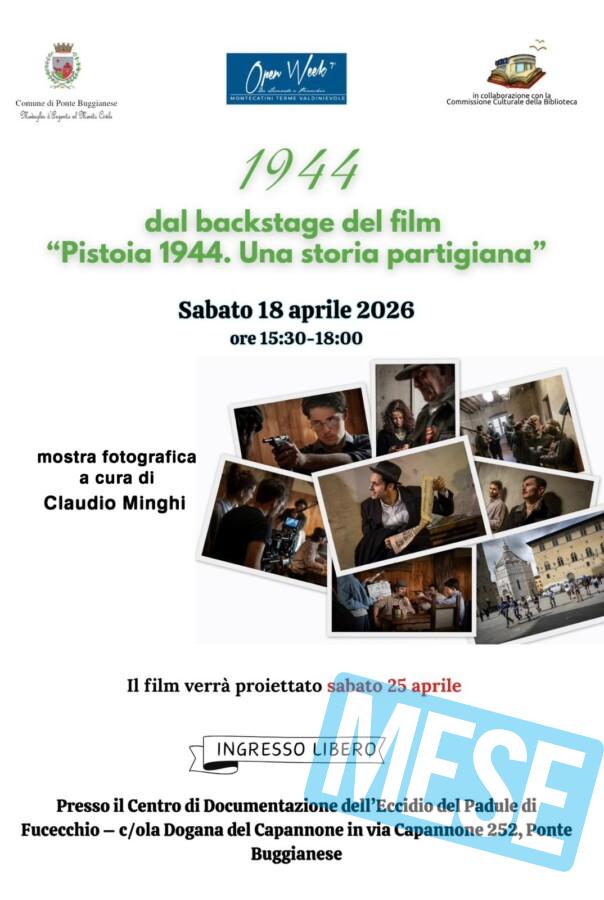 Ponte Buggianese – L’amministrazione Comunale di Ponte Buggianese, in sinergia con la Commissione Cultura, e nell’ambito del progetto Open Week della Valdinievole annuncia per sabato 18 aprile, alle ore 16,00 presso la Dogana del Capannone, in Via Capannone 252, un doppio appuntamento dedicato alla memoria storica: la presentazione del libro “I CNL della Valdinievole: tra storia e memoria” e l’inaugurazione della mostra “1944 dal backstage del film Pistoia 1944. Una storia partigiana “.