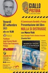 PISTOIA – Venerdì 22 settembre alle ore 18 nel Pantheon degli Uomini Illustri in piazza San Francesco sarà presentato il nuovo romanzo giallo dello scrittore fiorentino Marco Vichi Nulla si distrugge (Edizioni Guanda Noir). Oltre all’autore, saranno presenti Giuseppe Previti, presidente dell’Associazione Giallo Pistoia odv e Barbara Innocenti, insegnante.