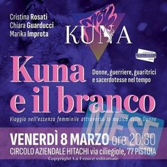 “Kuna e il branco” è l’incontro di professioniste e amatrici del canto, donne di ogni età che uniscono le proprie voci proponendo uno spettacolo che trova nella condivisione di essere donna la propria cifra stilistica. Uno spettacolo originale e coinvolgente che non a caso va in scena il giorno della festa della donna. Ad accompagnare le voci del branco ci saranno il polistrumentista Tomo, Lorenzo Del Pero alla chitarra, Vincenzo Lo Monaco al pianoforte, Claide Magrini alla batteria ed Emanuela Galeotti al gong, alle campane e al tamburo sciamanico. Edi Fanti, Gianna Capecchi e Valentina Pisaneschi si alterneranno sul palco per recitare una selezione di brani a tema.