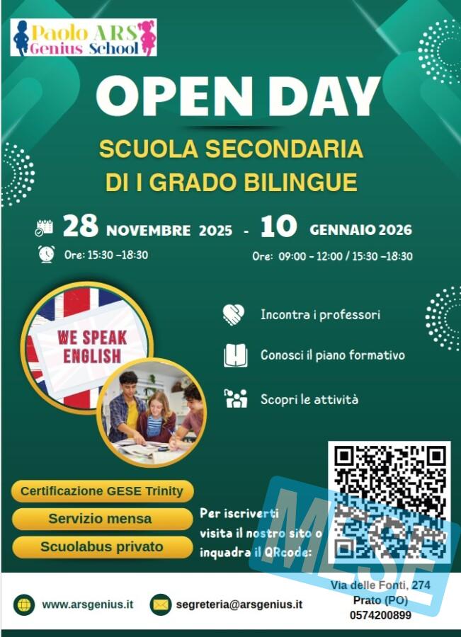 Dopo il boom di adesioni all’open day del 28 novembre, Ars Genius programma un’altra giornata a porte aperte per scoprire un metodo di studio bilingue unico in Toscana. L’appuntamento è per sabato 10 gennaio, dalle 9 alle 12 e dalle 15.30 alle 18.30 negli spazi dell’Istituto paritario bilingue di via delle Fonti 274 a Prato. Struttura scolastica che ha al proprio interno la Primaria e la Secondaria di primo grado. Un istituto che assicura un percorso educativo fin dall’infanzia, grazie alla collaborazione sinergica con Dreamers’ Nook.