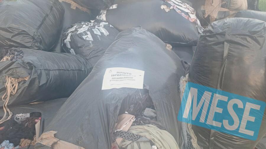 Guardando all’interno dei sacchi neri troviamo scarti di ritagli tessili. Ma anche vestiti, biancheria intima, pigiami. E la beffa è che i sacchi si stanno ammassando uno sopra l’altro: “Chi conferisce abusivamente i rifiuti, essendosi reso conto che i sacchi non vengono tolti, sta continuando ad abbandonare rifiuti su rifiuti nel campo – aggiunge Esposito -. E di fatto si sta creando una vera e propria discarica a cielo aperto a fianco all’area sportiva”.