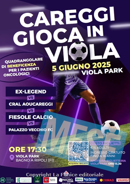 ‘Careggi gioca in Viola’. È il titolo dell’iniziativa di beneficenza organizzata dalla Nigro Costruzioni e della Fondazione Careggi presieduta dal dr. Jacopo Nori Cucchiari, con il supporto della Direzione dell’Azienda Ospedaliero-Universitaria, per raccogliere fondi in favore dell’Ospedale fiorentino. A sostenere l’iniziativa anche Banco Fiorentino, i soci Conad di Firenze, e Vangi.