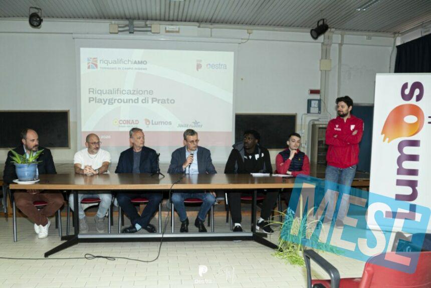 Prato – Nella mattinata di lunedì 20 aprile presso l’auditorium dell’Istituto Comprensivo Nord di Prato si è svolta la conferenza stampa in vista della prossima inaugurazione del nuovo playground all’interno del plesso scolastico. L’iniziativa del Pistoia Basket 2000 “RiqualifichiAmo” si appresta così a toccare la seconda tappa extra-provinciale di questo primo anno del progetto e lo farà in una realtà molto importante: parliamo infatti del terzo istituto scolastico più grande della Toscana, con circa 1700 studenti frequentanti. L’inaugurazione avrà poi luogo mercoledì 29 aprile alle ore 12. Questa nuova riqualificazione è stata resa possibile con il contributo del First Sponsor del Club Lumos e con la realizzazione dei lavori da parte della ditta Joker Floors.