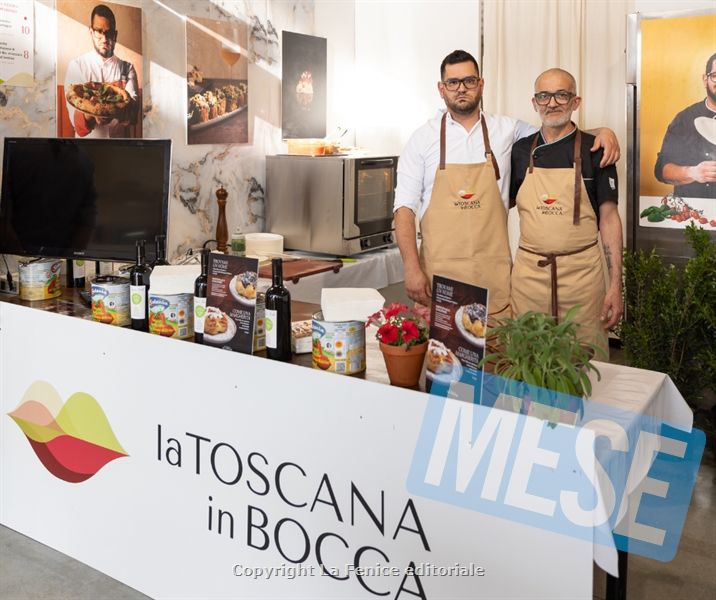 TOSCANA – Un sold out entusiasta ha salutato la presentazione ufficiale della nuova creazione dolce firmata dal maestro pizzaiolo Manuel Maiorano, andata in scena durante l’edizione 2025 de La Toscana in Bocca, dal 24 al 27 Aprile a Pistoia. Maiorano, tra gli organizzatori dell’evento, ha presentato una raffinata pizza ispirata alla celebre Pesca di Prato del famoso maestro pasticcere Paolo Sacchetti, autentico custode della tradizione dolciaria toscana, presente allo stand per uno spettacolare show cooking a quattro mani che ha incantato il pubblico.