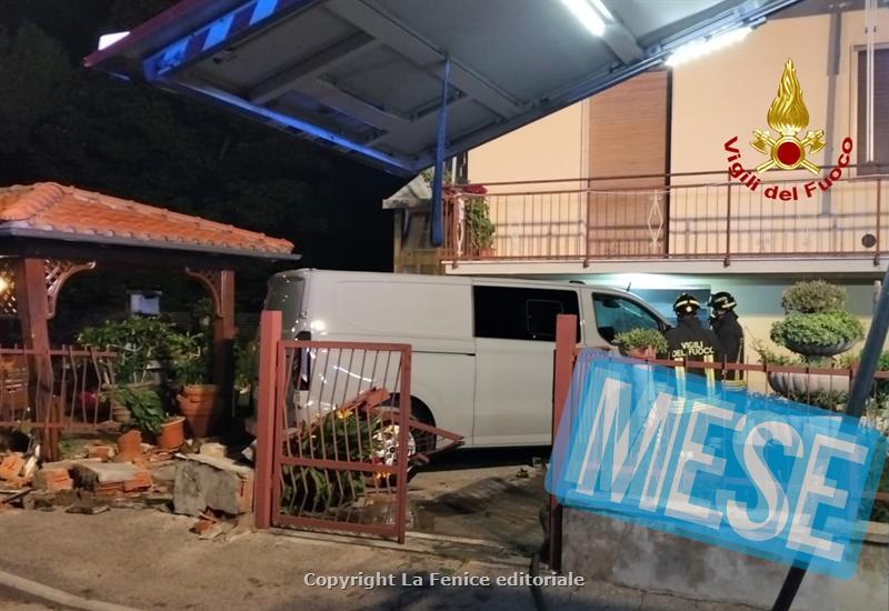 UN AUTOFURGONE FINISCE TRA GLI ARREDI ESTERNI DI UNA ABITAZIONE