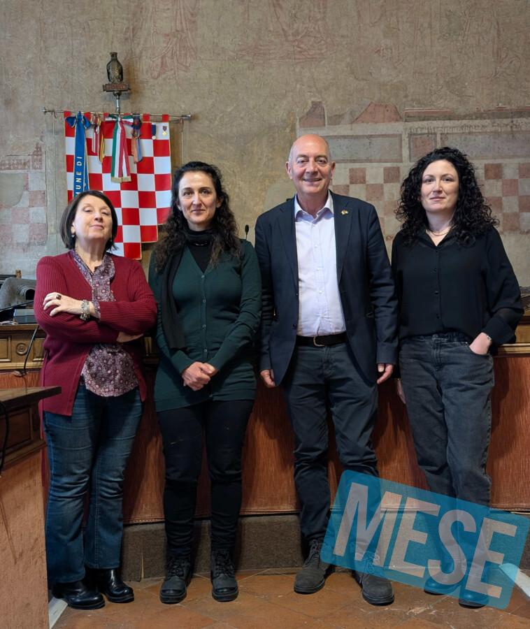 Nella foto da sinistra Tania Pasquinelli e Ilaria Palmieri dell'ufficio Turismo e Albi Terzo Settore, l'assessore al Turismo Alessandro Sabella e Graziani Maggi della Deda srl