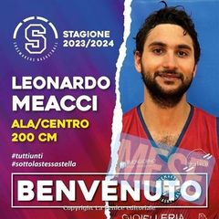 Leonardo Meacci, classe 1995, ala di cm.200, ha compiuto tutto il percorso delle giovanili a Montecatini per poi trasferirsi a Pontedera, dopo una breve parentesi in Serie B a Valsesia, Leonardo disputa ben 10 stagioni in serie C con le maglie di Montale, Empoli, Agliana, Montegranaro, Pescia e Fucecchio che lo consacra come un vero esperto della categoria. La scorsa stagione, alla ripresa di un noioso infortunio, sceglie di mettersi in gioco in Serie D con la maglia di Chiesina Uzzanese dove realizza 407 punti in 30 gare (13,6 ppg, miglior realizzatore della squadra) con un high di 26 punti segnati contro Valdera.