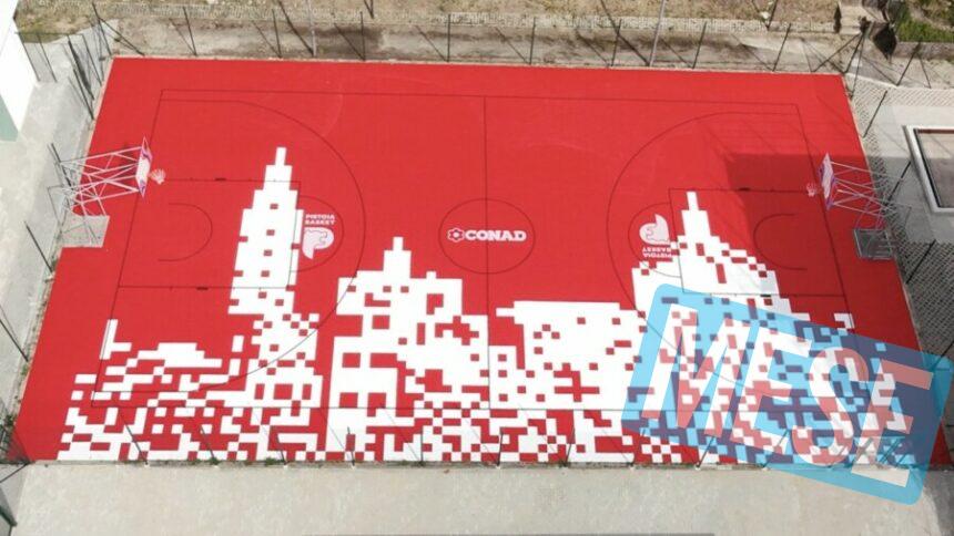 Il campo da gioco, realizzato dalla ditta partner Joker Floors, è stato interamente ricoperto con una pavimentazione modulare outdoor che richiama i colori sociali del club di via Fermi e fornito di nuovi canestri e tabelloni ad altezza regolamentare. Su entrambe le lunette del tiro libero è stato posto il logo del Pistoia Basket, mentre su quella di centrocampo il simbolo di Conad. Lungo l’intero perimetro è stato infine riprodotto lo skyline della città.