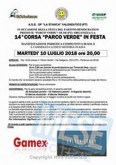 QUARRATA – In occasione della festa del Partito Democratico che si tiene al Parco Verde di Olmi -Quarrata. Si corre la quattordicesima edizione del ”Parco Verde in Festa” gara podistica competitiva di metri 8000 e ludico motoria di metri 4000 e organizzata dalla Podistica La Stanca Valenzatico con la colaborazione del comitato della festa.Il ritrovo e fissato alle ore 18,30 al Parco Verde di Olmi in Via Galgana, da dove alle ore 20 prendera il via la gara.Saranno premiati i primi 35 assoluti uomini,15 veterani uomini,8 veterani argento uomini,10 donne assolute e 4 donne veterane.La quota iscrizione alla gara e di euro 3 per i tesserati UISP e di euro 5 tesserati FIDAL e altri enti di promozione sportiva e a tutti al momento dell’iscrizione verrà consegnato un pacco gara. Trofei e coppe per tutte le società con maggior numero di iscritti.Per informazioni sulla gara telefonare al 3339325078.