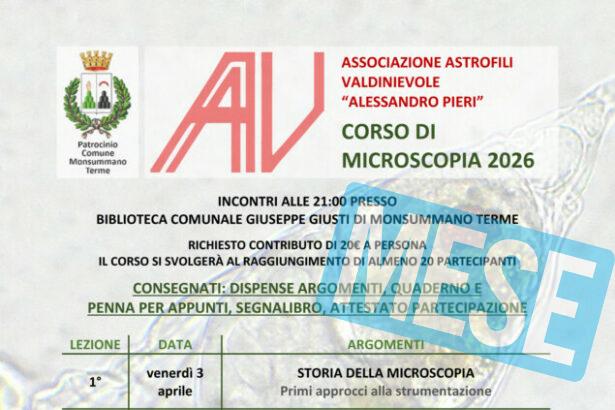 Monsummano Terme - L’ Associazione Astrofili Valdinievole “A.Pieri” organizza per il mese di aprile 2026 un corso base di microscopia…