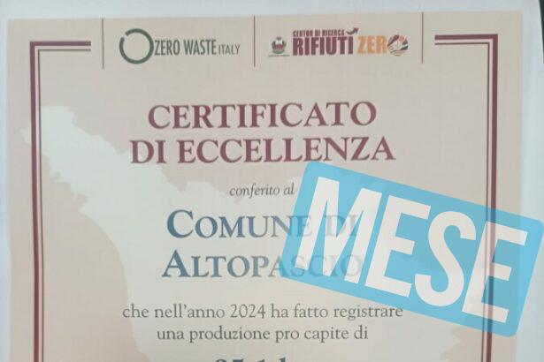 Altopascio - Il Comune di Altopascio ha ricevuto il Certificato di eccellenza per i risultati ottenuti nella riduzione del rifiuto urbano residuo (Rur…