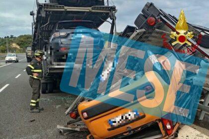 Bisarca carica di auto coinvolta in un incidente, caos sulla statale 223