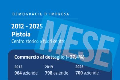 Pistoia - Dal 2012 al 2025 le imprese del commercio al dettaglio a Pistoia sono calate di 264 unità: erano 964…