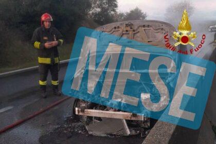 Mezzo pesante distrutto dalle in fiamme in autogrill