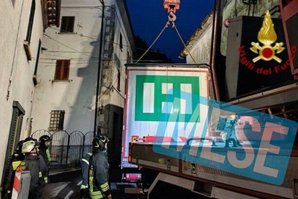 Camion si incastra lungo la strada, serve l’intervento dei Vigili del Fuoco