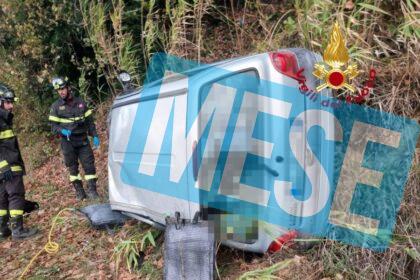Si ribalta con l’auto in mezzo alla strada provinciale