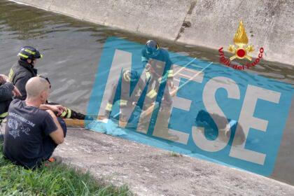 I Vigili del Fuoco salvano un cane finito in un canale di scolo