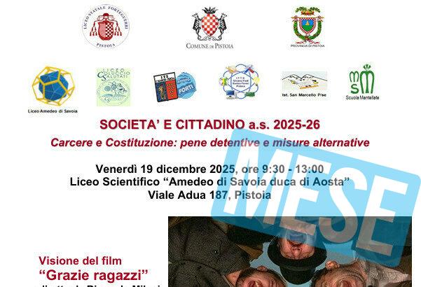 Pistoia - Al via la 29° edizione del progetto 'Società e Cittadino' che quest'anno affronterà la tematica "Carcere e Costituzione:…